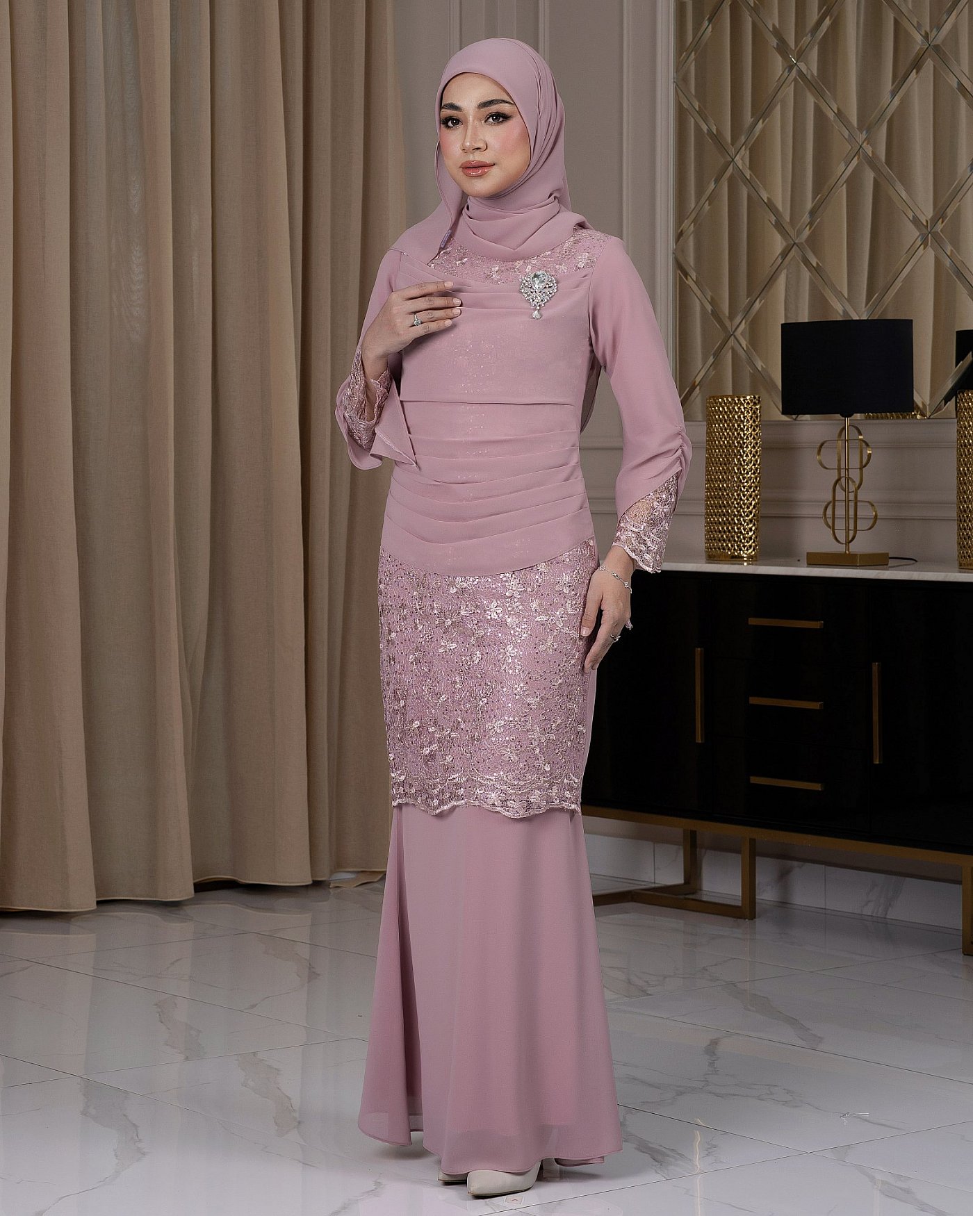 Dania Kurung, elegant and lightweight outfit made from soft chiffon fabric that drapes beautifully on the body. Designed for comfort and effortless style, this piece features a flowy silhouette that is breathable and suitable for raya festive.