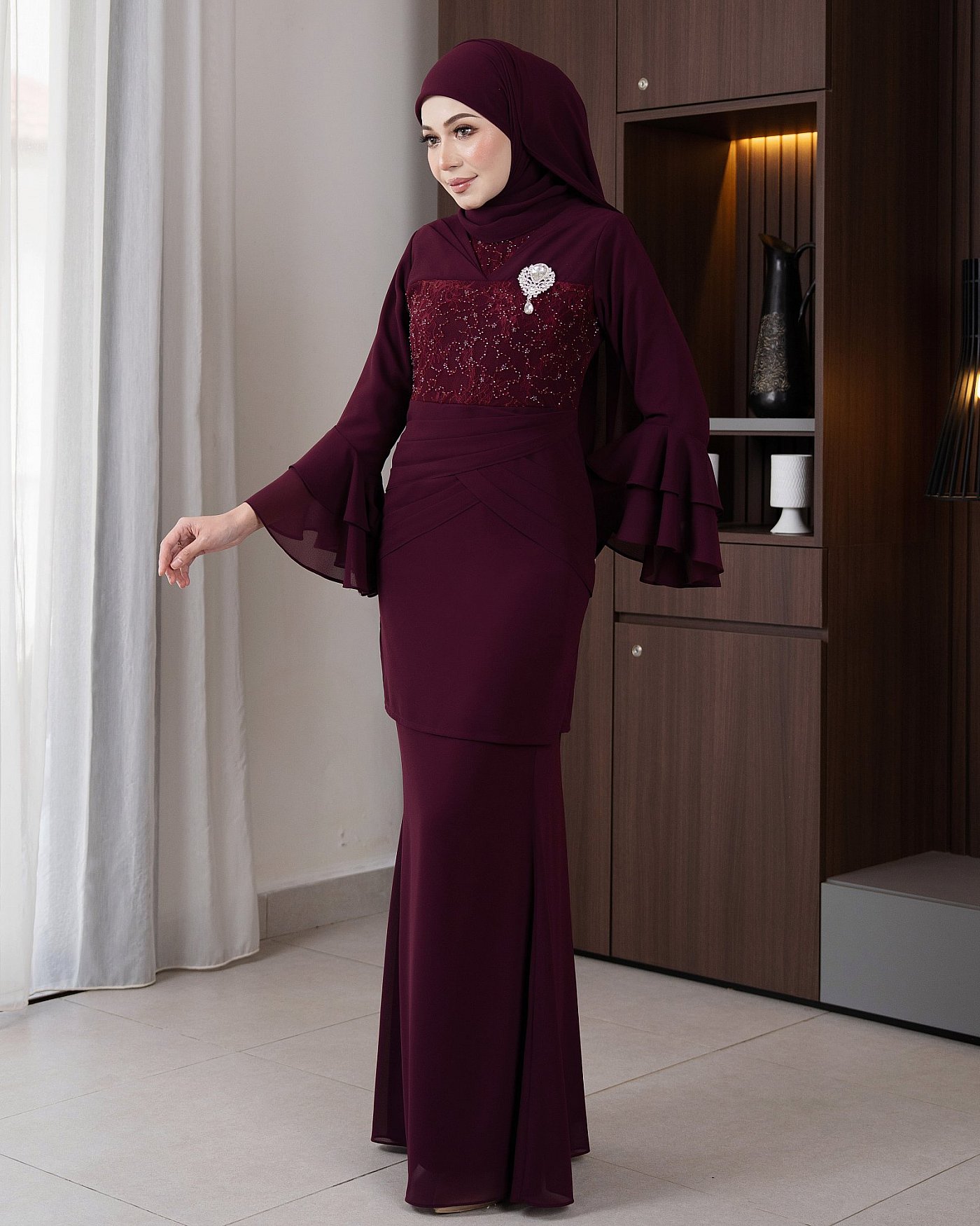 Maya Kurung, elegant and lightweight outfit made from soft chiffon fabric that drapes beautifully on the body. Designed for comfort and effortless style, this piece features a flowy silhouette that is breathable and suitable for raya festive.