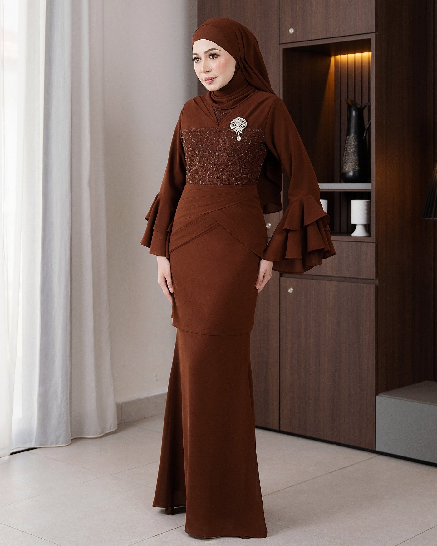 Maya Kurung, elegant and lightweight outfit made from soft chiffon fabric that drapes beautifully on the body. Designed for comfort and effortless style, this piece features a flowy silhouette that is breathable and suitable for raya festive.