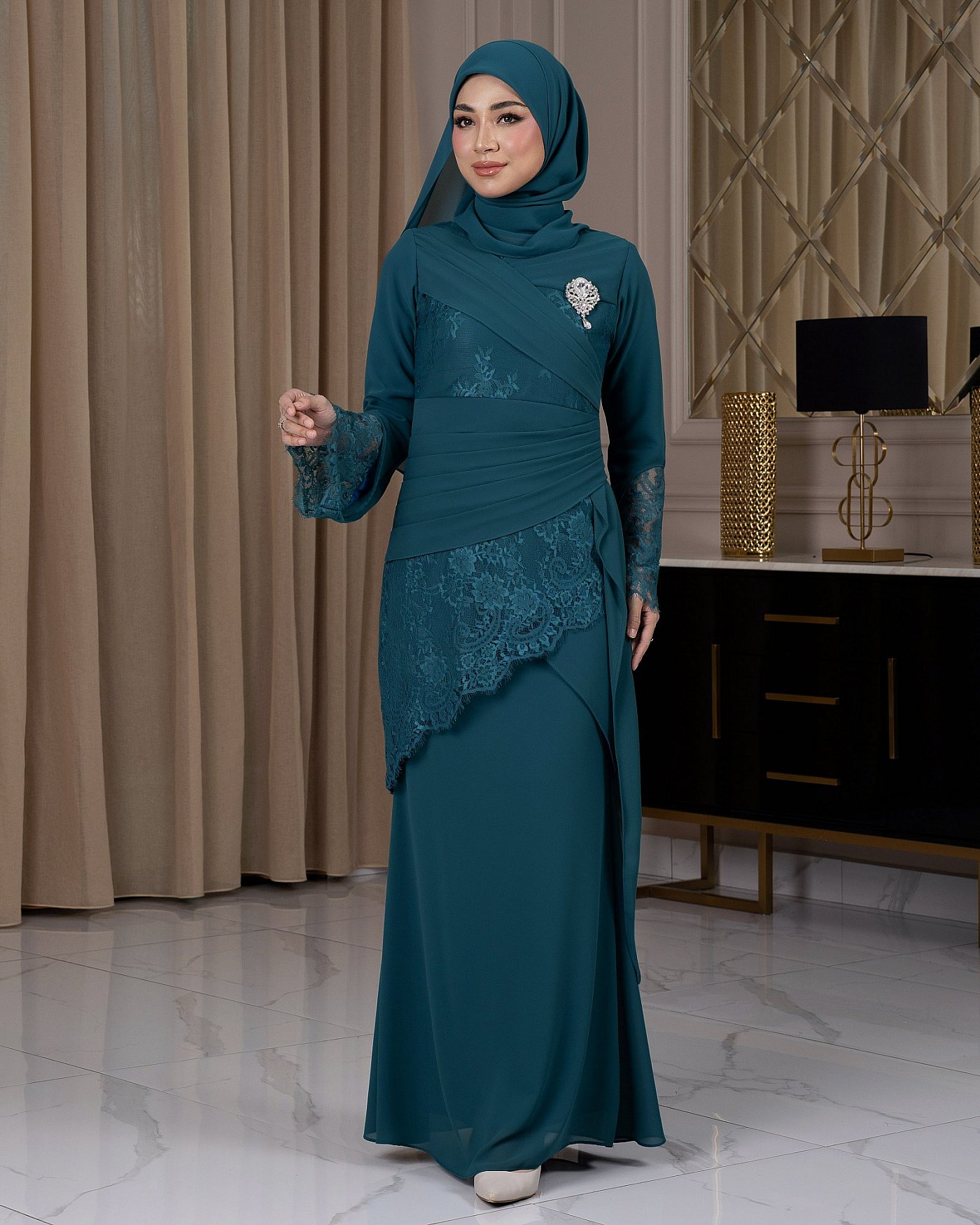 Yulienne Kurung elegant and lightweight outfit made from soft chiffon fabric that drapes beautifully on the body. Designed for comfort and effortless style, this piece features a flowy silhouette that is breathable and suitable for raya festive.