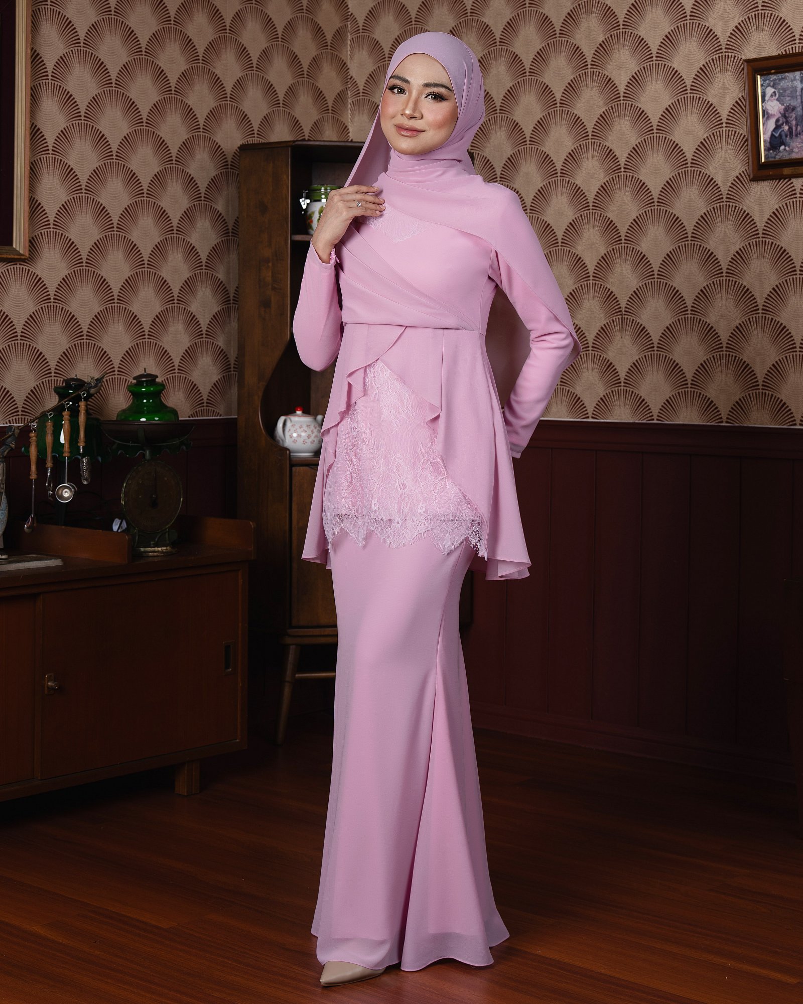 Rosalie Kurung crafted with the breathable fabric to ensures all-day comfort, while its airy texture of rench lace adds a touch of sophistication and femininity. Featuring a loose, modest cut, it flatters all body types effortlessly—perfect for both casual gatherings and special occasions.